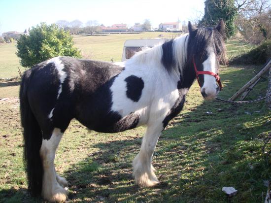 LADY MARMALADE est une irish cob née en 2003, pie noir, importée d'Irlande. Elle toise 1 m42, a une tête craquante et une très bonne conformation.